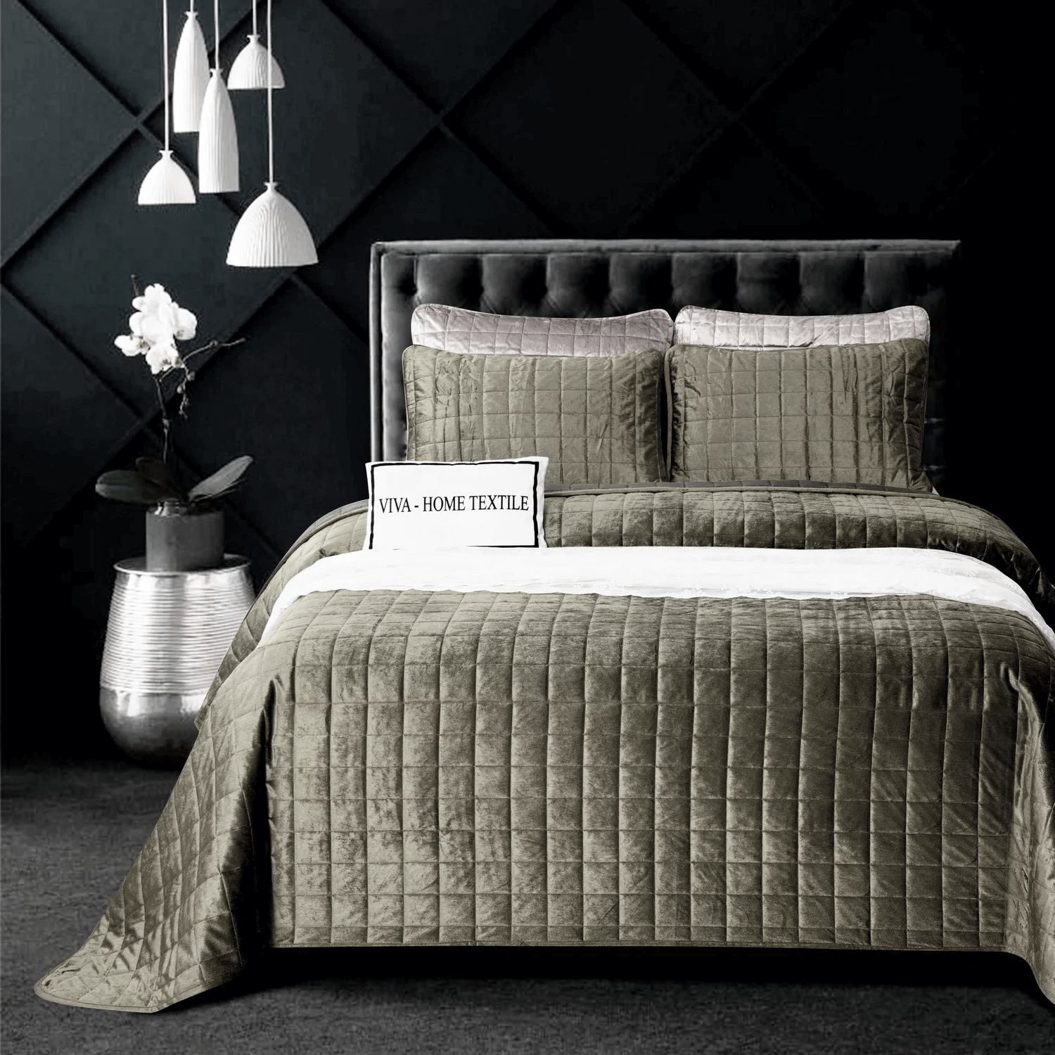 Велюровое покрывало в клетку и две наволочки (Серый)